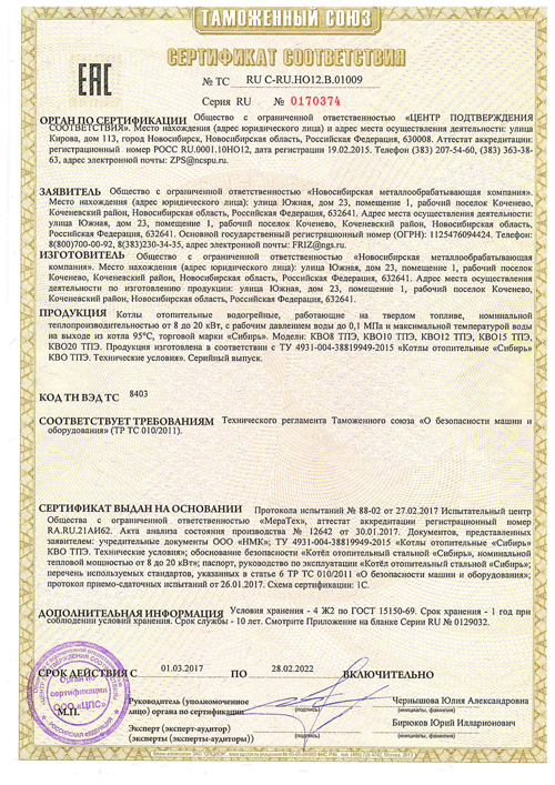Твердотопливный котел Сибирь КВО 10 кВт, с универсальным подключением патрубков подачи и обратки, предназначен для отопления помещений площадью до 100 м2. Он укомплектован стальной варочной плитой ― 12 мм, а так же биметаллическим термометром, встроенным в корпус. Отопительный котел имеет возможность установки ТЭНБ-3 кВт G1¼" и регулятора тяги.